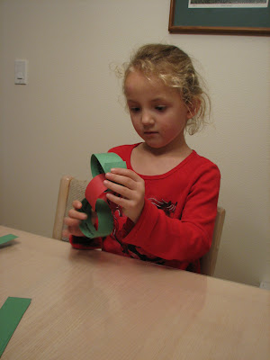 Hubby laid out the daily scripture reading this year, and last night the kids and I made a paper chain to not only count down the days till we celebrate the birth of Christ but also to focus each night's prayers on a specific family, friend or neighbor. Before we glued the strips together to form the chain, we wrote on each strip the names of people to pray for. So each evening when we tear off a link, we will pray for that person or persons.